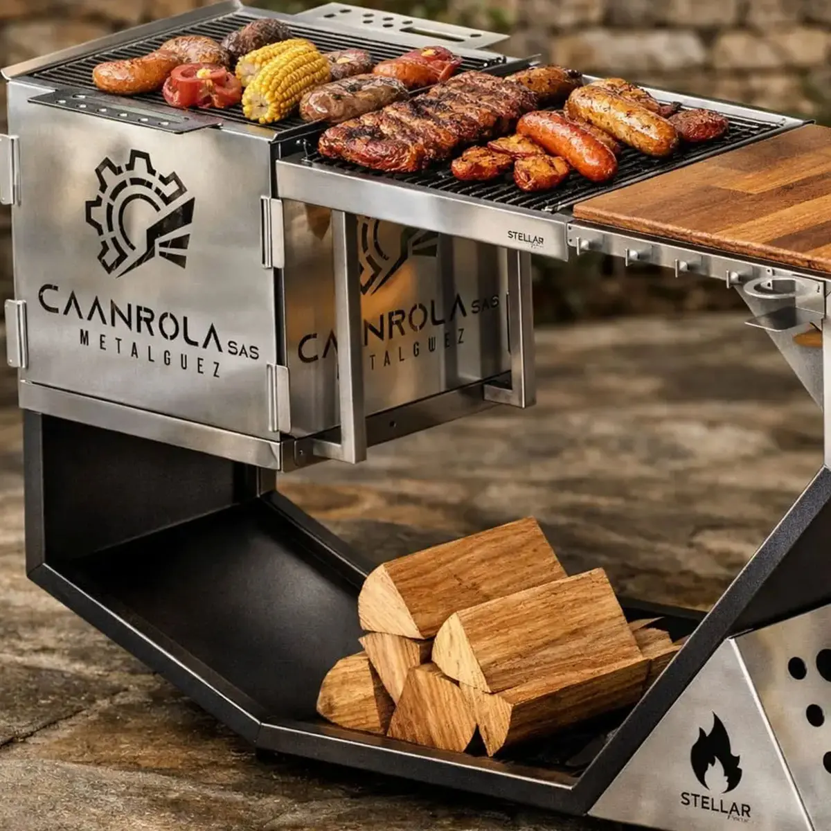La Estación de Parrilla Premium de Stellar Inox® trasciende la cocina convencional para convertirse en una pieza escultórica. Diseñada con una silueta geométrica en «C» que desafía la gravedad, esta estación combina el acero inoxidable de alto brillo con una estructura reforzada de vanguardia. Es la elección predilecta para quienes ven el asado como un ritual de precisión y estilo.