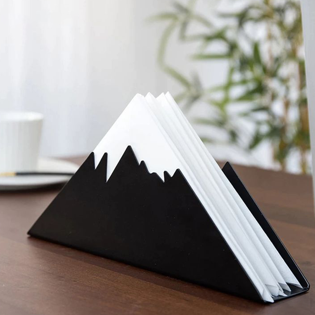 El Servilletero Montaña es la combinación perfecta entre la robustez del acero inoxidable y la sutileza del arte geométrico. Gracias a su base reforzada y su diseño de picos laterales, garantiza que las servilletas se mantengan en su lugar incluso en espacios exteriores como terrazas o jardines. Al ser de acero inoxidable, es una pieza inmune a la corrosión y extremadamente higiénica, ideal para quienes buscan durabilidad sin sacrificar la elegancia de una pieza de autor.